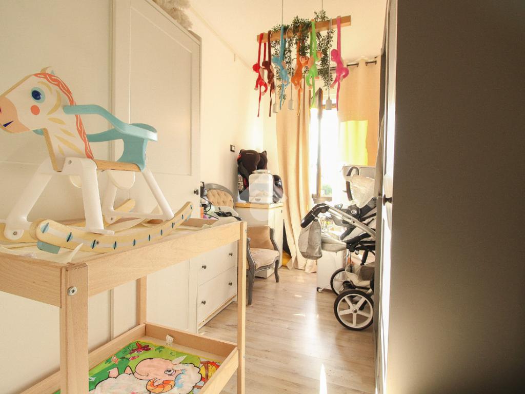 L'immobile è composto da soggiorno, cucina abitabile con accesso alla veranda, tre camere di cui due matrimoniali ed una singola e doppi servizi.